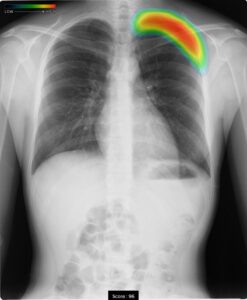 AI処理で、気胸の部位が赤く鮮明に描出されました。