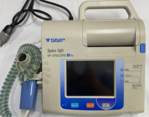 肺機能検査(スパイロメトリー)は、肺の換気機能(息を吸ったり吐いたりする能力)を調べる検査です。