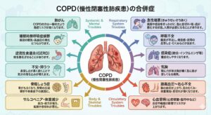 ・急性増悪(きゅうせいぞうあく):風邪や感染をきっかけに、急に息切れ・咳・痰が悪化する状態。入院が必要になることがあります。