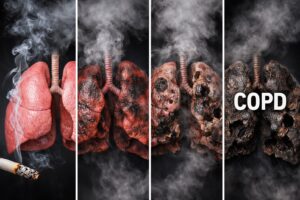 COPDは「肺の病気」ですが、全身に影響します。放置すると生活の質が下がり、入院や命に関わることもあります。早めの対策が大切です。