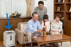 在宅酸素療法の“心臓部”で、家庭のコンセントで動きます。酸素ボンベのように補充の配達を待つ必要がありません(停電時は携帯ボンベを併用)。