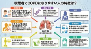 なお、受動喫煙や粉じん・調理煙などの環境因子も発症や増悪に関与します。