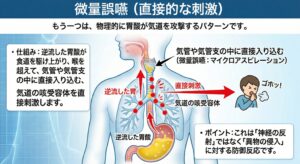 もう一つは、物理的に胃酸が気道を攻撃するパターンです。