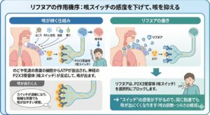 → “スイッチ”の感度が下がるので、同じ刺激でも咳が出にくくなります(咳の回数・つらさの軽減)。