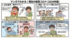 症状の経過や後遺症は、ワクチン接種歴、年齢、基礎疾患の有無、感染時の重症度によっても左右されます。
