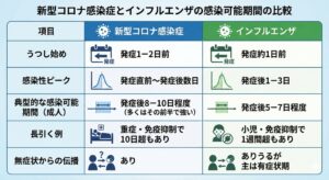 インフルエンザと比較して、新型コロナはいつからいつまで感染するの?
