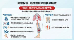 ただの喘息発作なのか、肺塞栓症なのかを見分けることは、命を守るために非常に重要です。以下のような特徴がある場合は、肺塞栓症の疑いがあります。