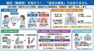 ・ここが落とし穴: 実際には、日本はまだ結核の中蔓延国です。働き盛りの若い世代でも、過労やストレスで免疫が落ちた時に発病することがあります。「自分は関係ない」という意識を変えることが大切です。