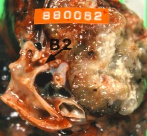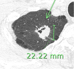 ・空洞形成(穴が開く): がんの中心部分が壊死(えし)して、CT画像で**「しこりの中に穴(空洞)が開いている」**様子が見られるのが大きな特徴です。