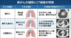 肺がんの種類によって、できる場所や画像での映り方に特徴あり