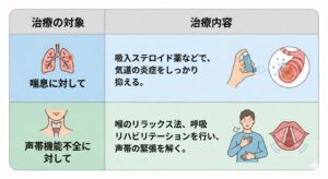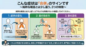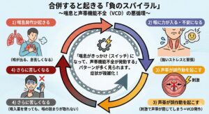 このように、**「喘息がきっかけ(スイッチ)になって、声帯機能不全が発動する」**というパターンが多く見られます