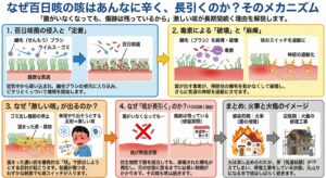 毒素が蓄積するプロセス: この菌は「百日咳毒素」などの有害物質を出して気道の線毛(せんもう)を破壊しますが、この毒素が蓄積し、実際に炎症や組織破壊として症状が出るまでにはタイムラグがあります。