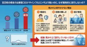 潜伏期間の長さと、その後の初期症状(カタル期)の特徴が合わさることで、**「感染拡大を食い止めるのが非常に難しい」**という厄介な問題が生じます。